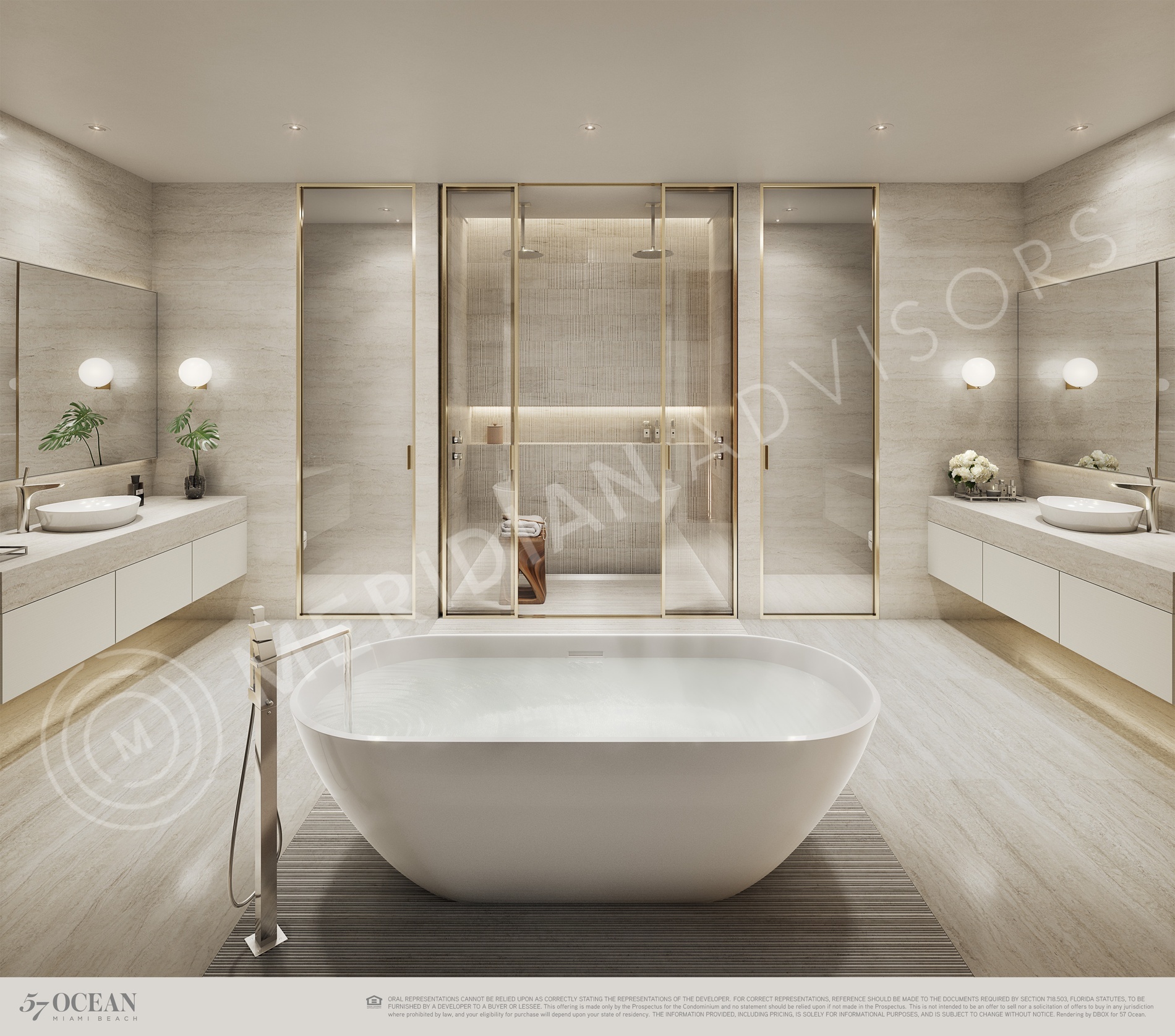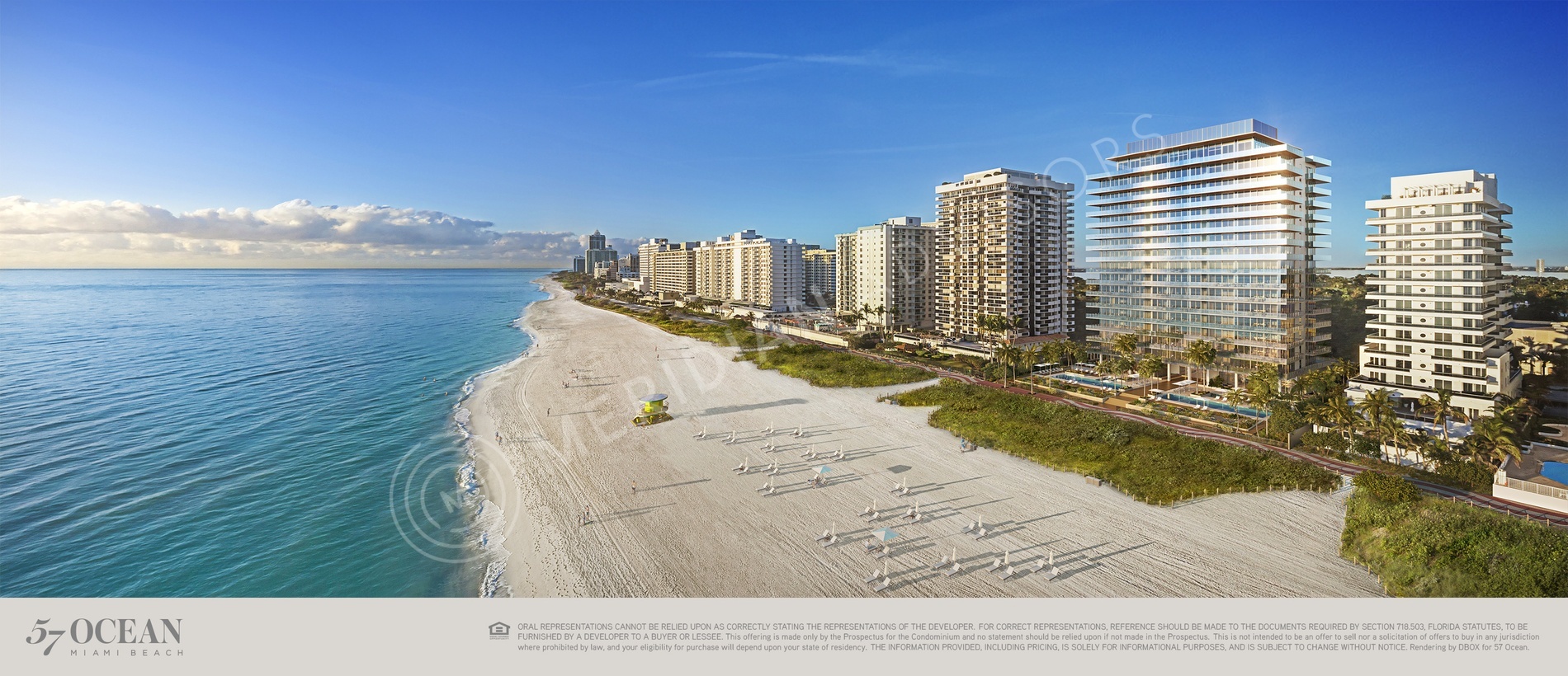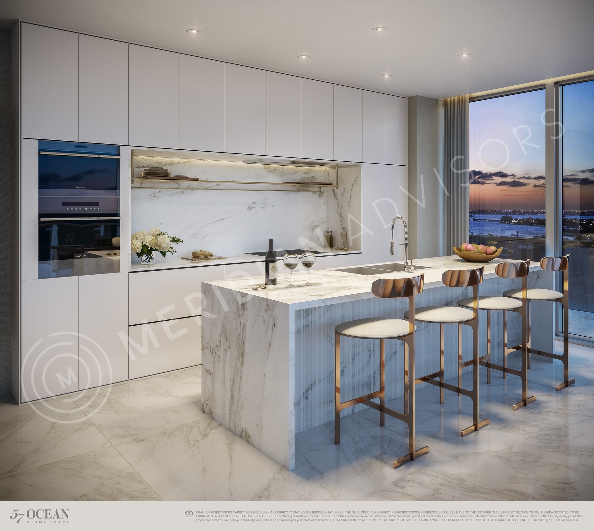 The first new development on Millionaire’s Row to open its doors since 2008, 57 Ocean is a once-in-a-lifetime new project pioneered by award-winning architectural firm Arquitectonica. This distinctive building will showcase 71 total residences, as well as an opulent 15,000-square foot penthouse manicured with only the finest finishes and views of the Atlantic. Every aspect of 57 Ocean’s design exudes total sophistication, and its interiors mimic the flowing dialogue of the nearby sea.
